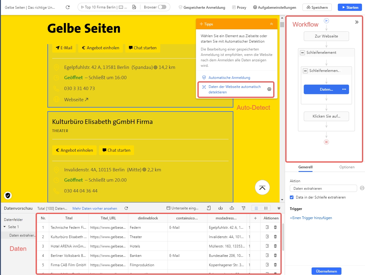 Scrape Daten einfach mit Auto-Dedektion, ganz ohne Coding.